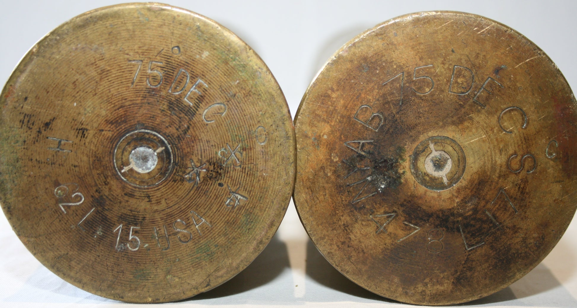 Approx. 13.5 inches high, approx. 3 inches in diameter - in unpolished condition. (The flash makes them look brighter than they are). Please see the photo of the base markings to satisfy yourself of the date..