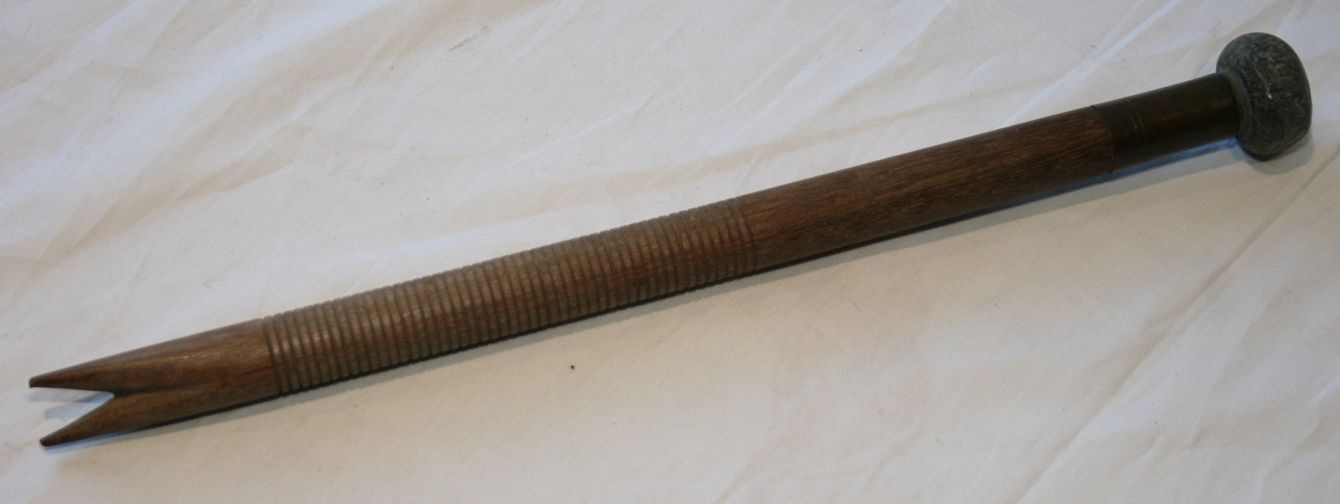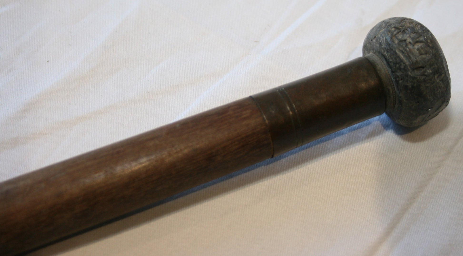 Approx 13 inches long, wooden with brass collar and lead weight to end.